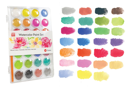 OAT ART STUDIO Portable 28 Color Watercolor Artist Paint Set with Plastic Palette Lid Case and Paintbrush, Easy to Blend, Non-Toxic Kid-Safe Watercolor Cake for Beginners and Professional Artist